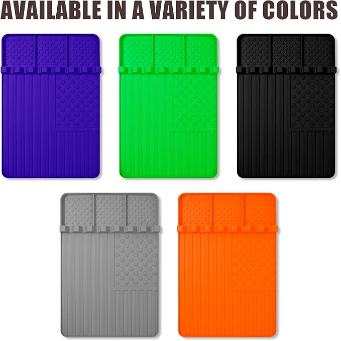 - 【Large Size】The silicone spatula mat measures 15.5 x 10.5 inches. So you get enough space to park your multiple BBQ tools, with 7 slots providing flexibility for your BBQ needs. Suitable for kitchen, cooking and countertop to keep clean. Never worry about a staining a countertop with a dirty spatula again.