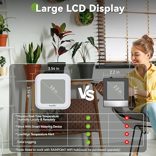 - 🌎Real-Time Monitoring Anytime Anywhere - Whether you're at work, on vacation, or simply away from home, stay connected to your plant's environment with our wifi hub. With real-time monitoring via the RAINPOINT Home app, you'll always know if your leafy companions are basking in the perfect climate.