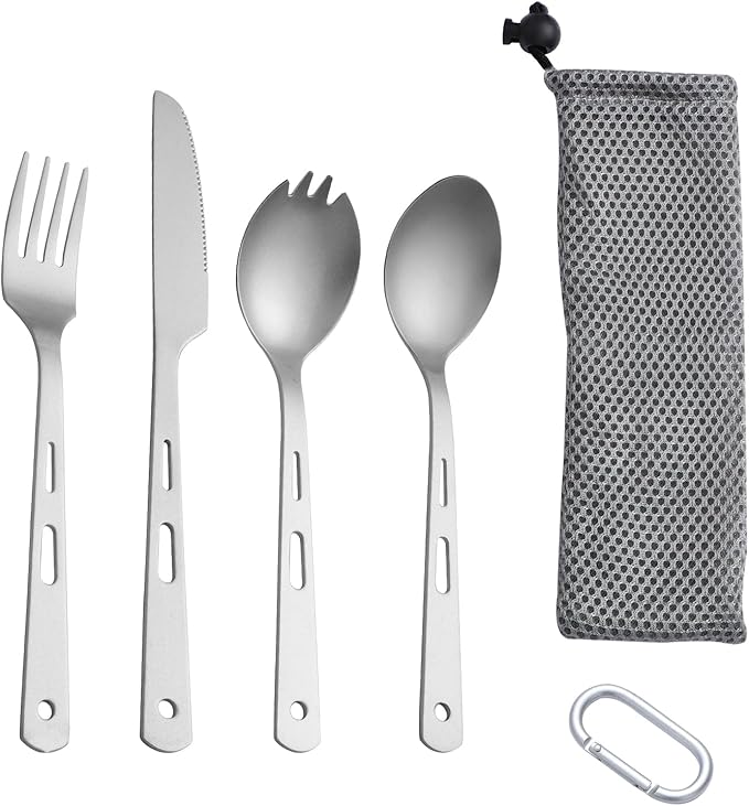 - Complete Set for Outdoor Adventures: This 4-piece set includes a knife, fork, spoon, and salad spoon, giving you all the utensils you need for meals on the go. From camping and backpacking to everyday outdoor adventures like hiking and picnics, this versatile set is your go-to solution for any outdoor dining experience.