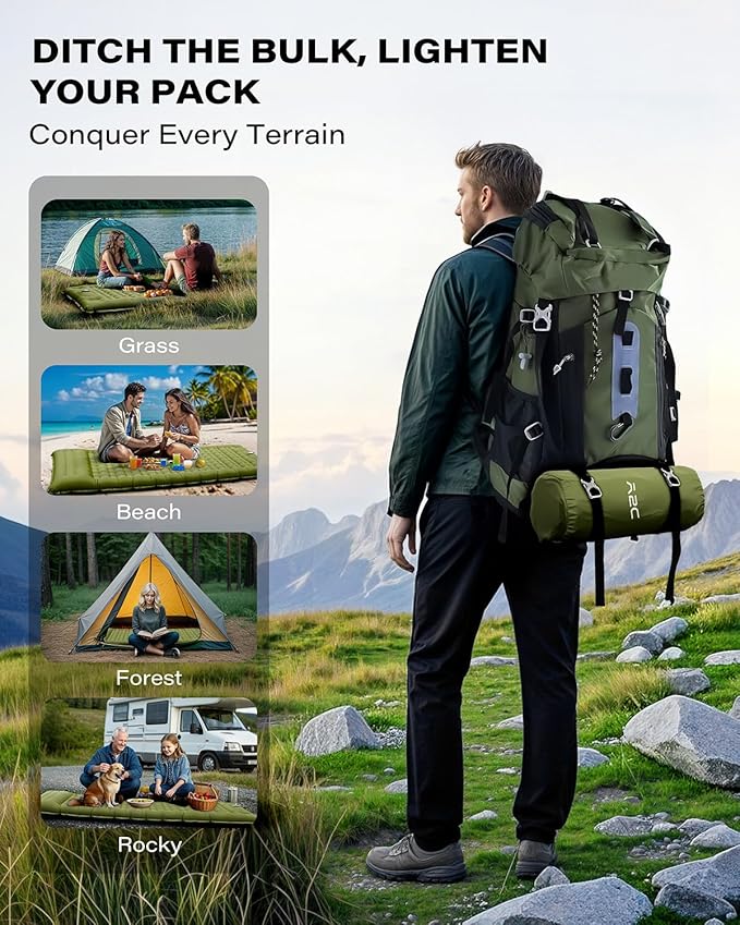- 【Lightweight & Portable】:The backpacking sleeping pad folds down to a compact 11" x 6" and weighs only 2.16 lbs—easy to pack without adding bulk to your backpack. Perfect for camping, hiking, beach outings, car travel, or tent sleeping, this camping pad is a true camping essential for outdoor comfort.