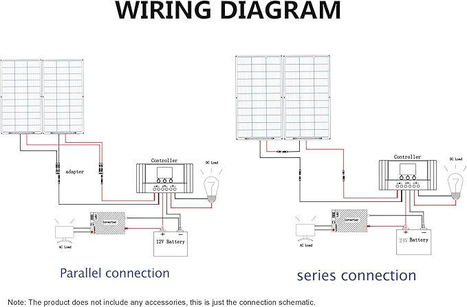 - Increase power.It can charge 12V batteries or 24V/48V batteries by connecting solar panels in series or in parallel to increase power.