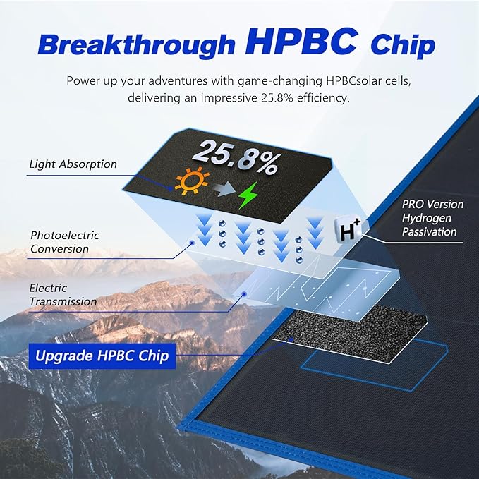 - ☀【Ground-breaking HPBC Technology】: Energize your outdoor adventures with our ATEM POWER 200W solar blanket, featuring innovative HPBC cells. Rv solar kit by relocating metal contacts to the back, these cells reduce shading and capture more sunlight, pushing efficiency to new heights. Foldable solar with a powerful 25.8% conversion efficiency, you’ll get maximum energy output, ensuring reliable power for all your off-grid adventures.