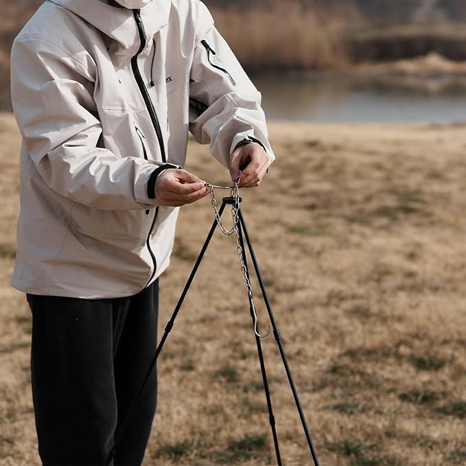 - Multi-Functional Design:Equipped with a hanging hook, this tripod can hold kettles, coffee pots, grills, hanging pots, Dutch ovens, and more – perfect for all your outdoor cooking needs