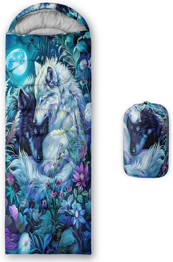 Sleeping Bags for Adults and Kids,3D Printing Camping Sleeping Bag for Girls Boys Lightweight Waterproof Cold/Warm 3-Season,Outdoor Travel with Compression Bags