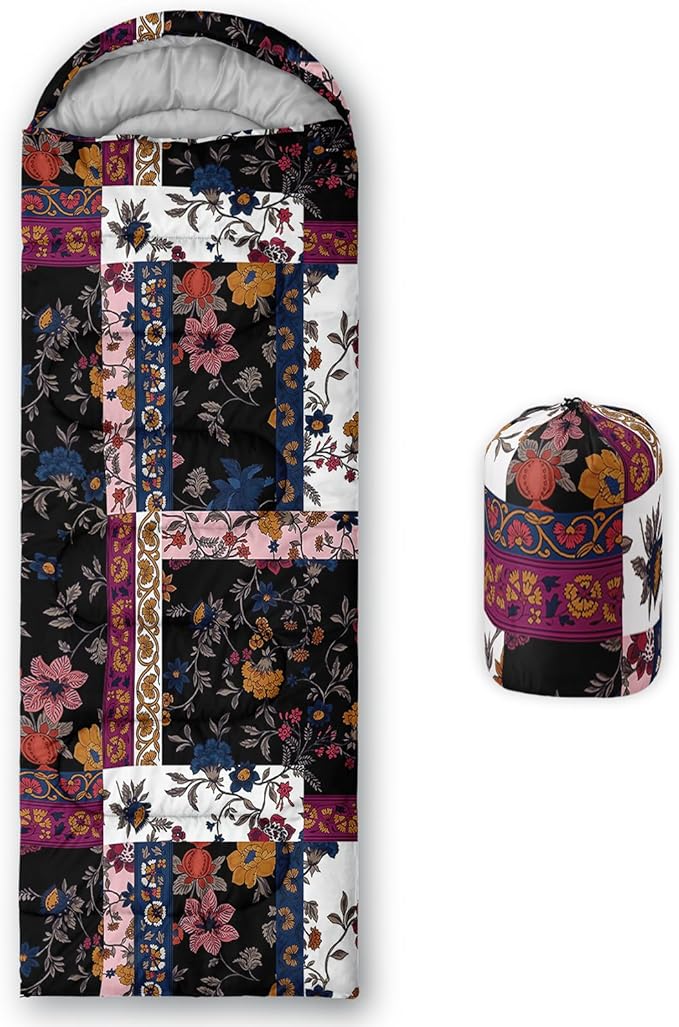 Sleeping Bags for Adults and Kids,3D Printing Camping Sleeping Bag for Girls Boys Lightweight Waterproof Cold/Warm 3-Season,Outdoor Travel with Compression Bags