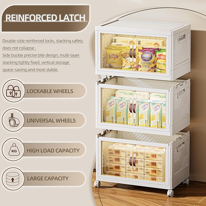 - Efficient Space Tidying: This stackable storage bin size is 43.3 x 25.6 x 16.5 inches. Includes 3 organiser box with wheels and 1 top cover to prevent dust intrusion. The current item option is 3 tier. This stackable storage bin has a maximum capacity of 252 QT (63 Gal). When you feel your space is cluttered, choose us for your storage needs.
