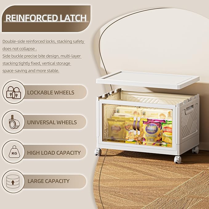84 QT / 21 Gal Magnetic Door Storage Bins Collapsible Stackable w/1 Lid, Heavy Duty Plastic Cabinet with Wheels for Home Office Organization (White)