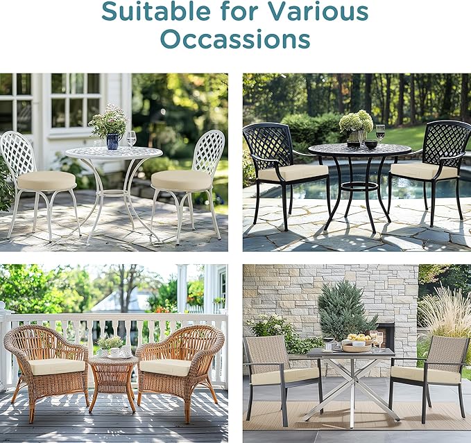 - Perfect for Patio Chairs & Small Spaces – Sized 19x19x3 inch, these cushions fit standard outdoor dining chairs, balconies, and compact patios, offering targeted comfort in tight setups.