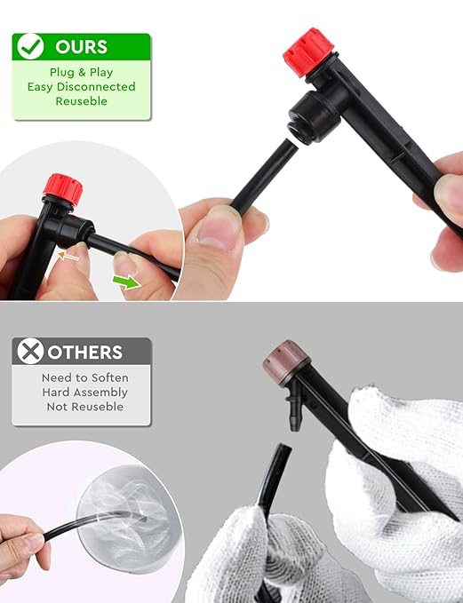 - Quick-Connect Design for Easy Setup: Our automatic drip irrigation kits feature a quick-connect design, making installation a breeze compared to traditional barbed fittings. Set up your garden sprinkler system in minutes without leaks or hassle
