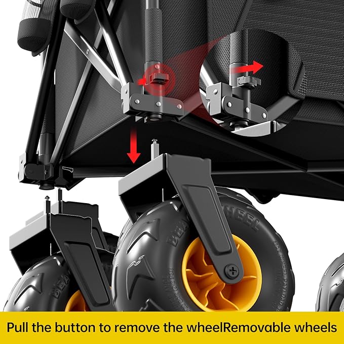 DXZ Beach Wagon Cart with Big Wheels for Sand – Folding Collapsible Wagon, Heavy Duty Wagons Carts Foldable for Beach, Camping, Outdoor Gear, Easy Setup Black Yellow