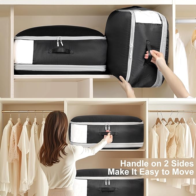 - [3-Layer Compression Bags] Our ultra space-saving self-compression organizer features a unique 3-layer compression system, offering not only more storage capacity than standard 2-layer designs but also greater flexibility. It’s perfect for blanket storage, comforter storage, pillow storage and bulky items, allowing you to optimize every inch of space in your closets or underbed storage containers.