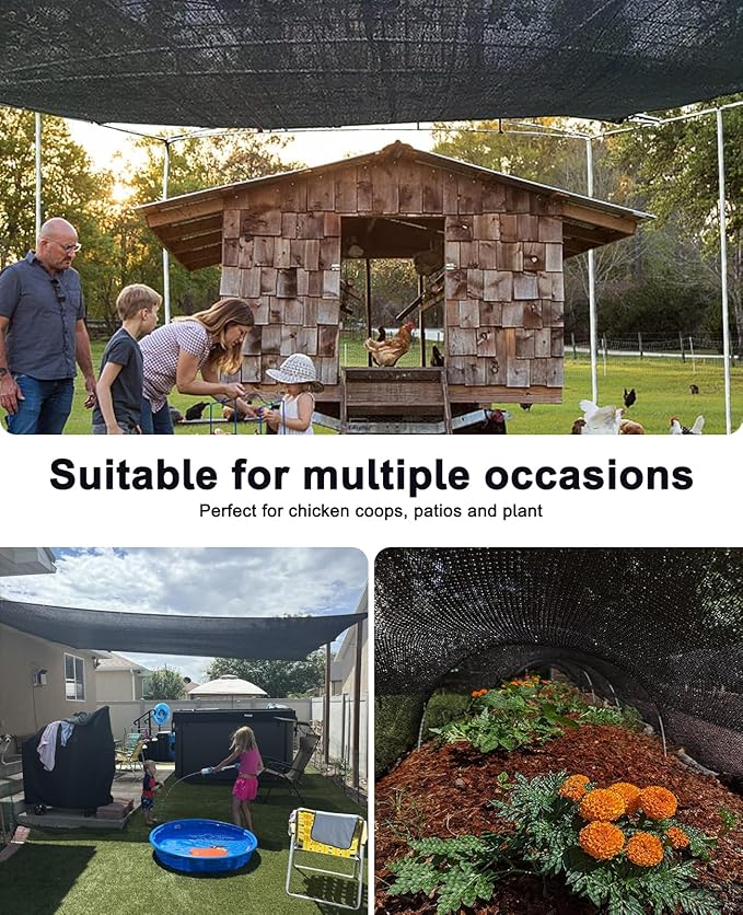 - Versatile Use for Home & Outdoor Spaces: Whether used as garden shade netting, greenhouse protection, swimming pool cover, pergola canopy, or chicken coop shade, this lightweight and durable shade cloth offers an effective solution for reducing sunlight exposure and creating cooler environments.