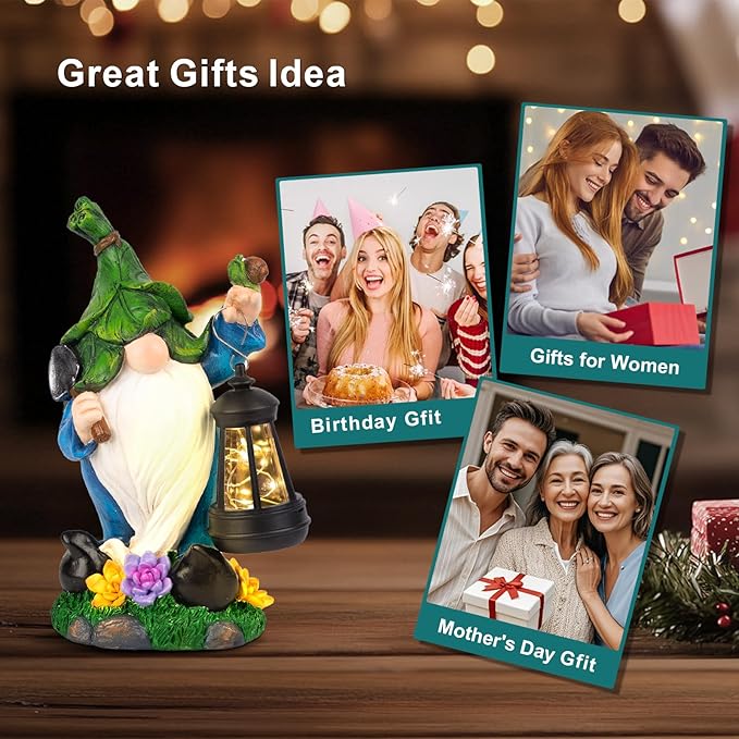 - [Gnome Gifts] Enhance your shopping experience with this unique solar garden gnome statue! Featuring a gnome design with a shovel, Placed in the yard, as if transported to a fairy-tale world. it's the perfect gift for women, mothers, and grandmothers. Not only does it add charm and utility to your outdoor space, But it also brings joy to your loved ones.