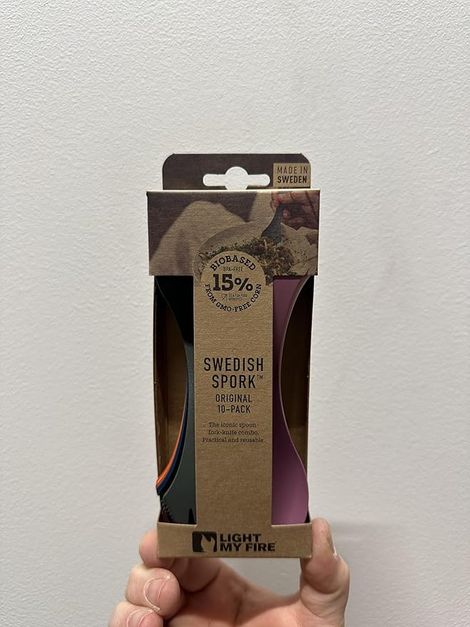 Light My Fire Spork Original 10-Pack 3-in-1 Camping Spoon Fork Knife Combo Reusable Travel & Camping Utensils Lunch Spork Outdoor Backpacking Hiking Picnic Utensil BPA Free