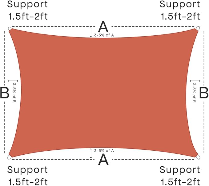 - ?�Easy Installation?? Our sun shade sail package comes with a complete set of installation accessories. It is recommended to keep the installation angle between 25 and 40 degrees for better wind resistance and durability. Also lets rain drain to prevent pooling,not waterproof.