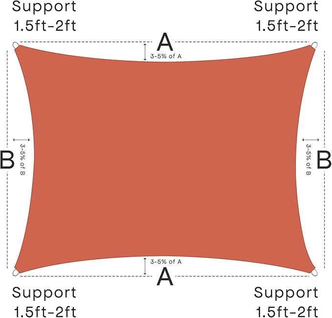 - ?�Easy Installation?? Our sun shade sail package comes with a complete set of installation accessories. It is recommended to keep the installation angle between 25 and 40 degrees for better wind resistance and durability. Also lets rain drain to prevent pooling,not waterproof.