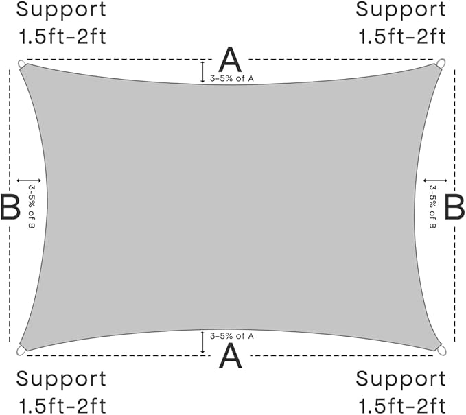 - ?�Easy Installation?? Our sun shade sail package comes with a complete set of installation accessories. It is recommended to keep the installation angle between 25 and 40 degrees for better wind resistance and durability. Also lets rain drain to prevent pooling,not waterproof.
