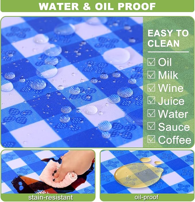 - Oil and Water Proof: Crafted from high-quality polyester, ensures no spills or stains soak in and easy to clean - just wipe it down with a damp cloth, and it's good as new. The material is also colorfast, wrinkle resistant and wear resistant, and whether used indoors or outdoors, this tablecloth will ensure that your table will still look vibrant after multiple uses