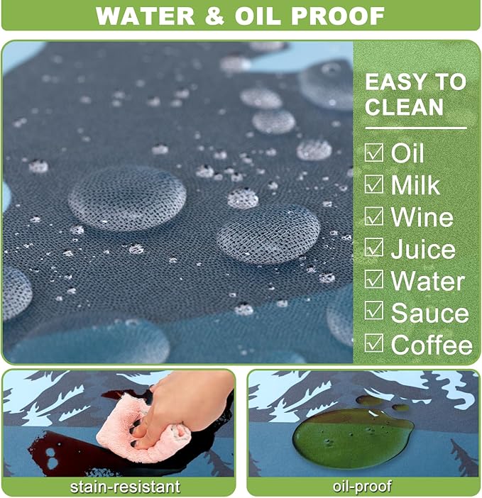 - Oil and Water Proof: Crafted from high-quality polyester, ensures no spills or stains soak in and easy to clean - just wipe it down with a damp cloth, and it's good as new. The material is also colorfast, wrinkle resistant and wear resistant, and whether used indoors or outdoors, this tablecloth will ensure that your table will still look vibrant after multiple uses
