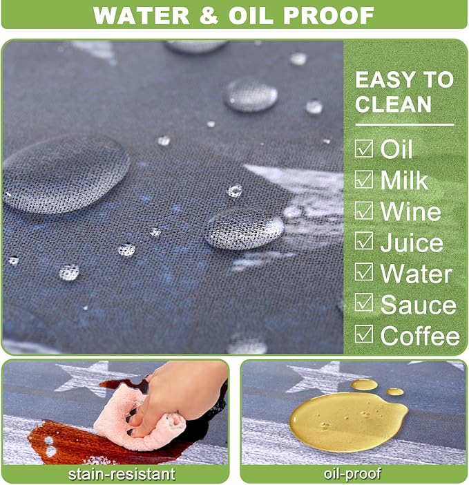- Oil and Water Proof: Crafted from high-quality polyester, ensures no spills or stains soak in and easy to clean - just wipe it down with a damp cloth, and it's good as new. The material is also colorfast, wrinkle resistant and wear resistant, and whether used indoors or outdoors, this tablecloth will ensure that your table will still look vibrant after multiple uses