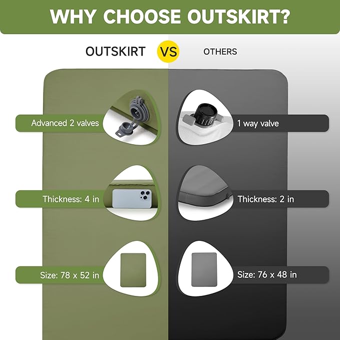 OUTSKIRT Camping Mattress, Self Inflating Sleeping Pad with Pump Sack, Foam Camping Pad for Sleeping, 4” Thickness Sleeping Mat for Camp/Travel/Car, 4 Season Camp Air Mattress