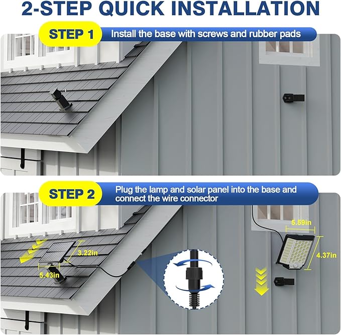 - ๐ฎ๐ณ๐ฌยฐ ๐๐๐ฉ๐๐๐๐ ๐ฃ๐๐ก๐๐ ๐๐๐ฆ๐๐๐ก Unique 3 panel setup for wider 270ยฐ panoramic light than traditional 1 panel design. Increase the range of brightness in the field of vision. Used to eliminate shadows in driveways, yards, and patios. Angled panels maximize coverage, complemented by 120ยฐ motion detection with a 26 ft range as solar security lights