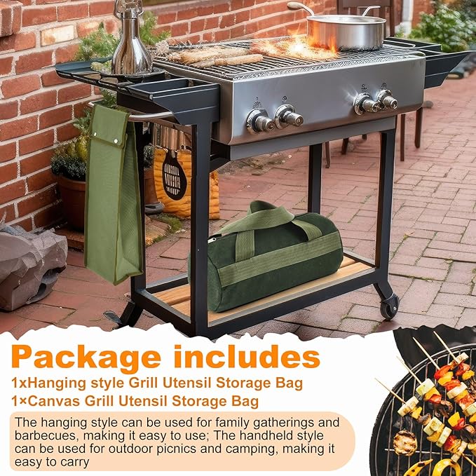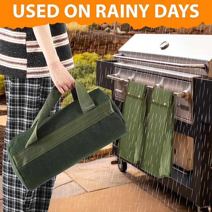 - Quality Matetrial: designed with canvas and oxford material, these grill tool storage is not just strong and durable but also machine washable; It won't easily fade or damage, Note: the horizontal bag is not waterproof, but the vertical bag is waterproof and can be carried in the rain; Ensuring long lasting service for your barbecue tools