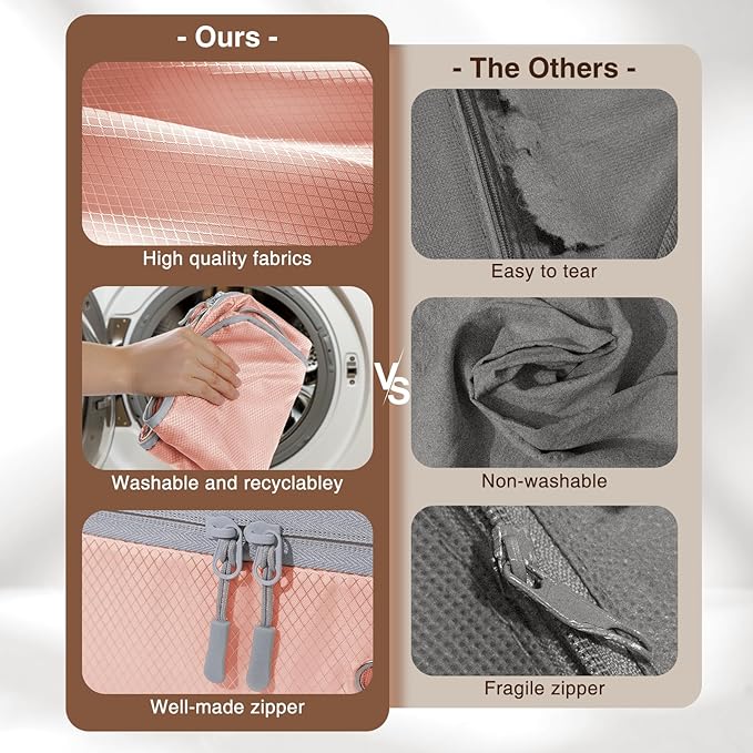 - Perfectly Size:Our organizer bag offer ample capacity without being cumbersome or space-consuming. Each bag can hold a large winter comforter or 6-8 down jackets. They are perfectly suited for decluttering your wardrobe and keeping your seasonal items organized and ready for use.Tip: After receiving your quilt storage bags, you can wash or iron the items before use to smooth out any wrinkles that may have occurred during transit. If you encounter any issues, we're more than happy to assist you