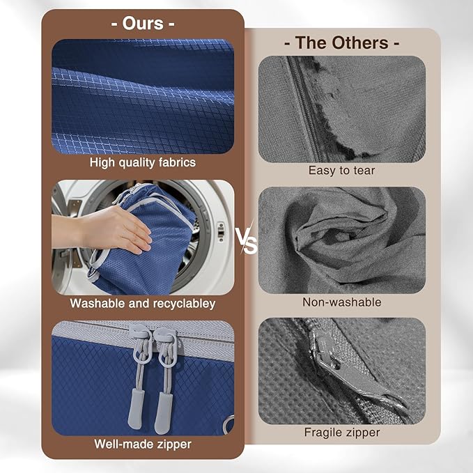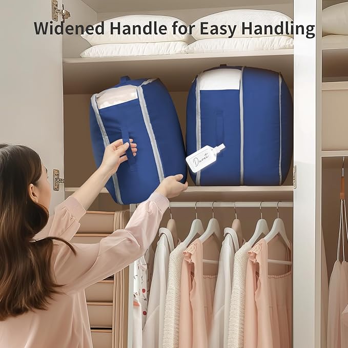 - Perfectly Size:Our organizer bag offer ample capacity without being cumbersome or space-consuming. Each bag can hold a large winter comforter or 6-8 down jackets. They are perfectly suited for decluttering your wardrobe and keeping your seasonal items organized and ready for use.Tip: After receiving your quilt storage bags, you can wash or iron the items before use to smooth out any wrinkles that may have occurred during transit. If you encounter any issues, we're more than happy to assist you