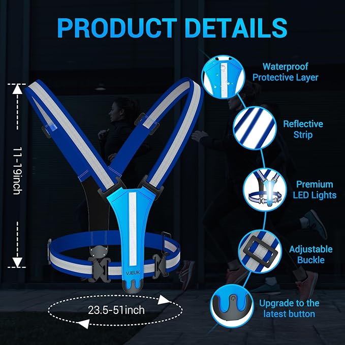 - ➡️【Superior Safety & Visibility】: The LED reflective vests offer superior visibility and safety. Designed with bright LED lights, as well as reflective strips, these vests ensure 360-degree ultra-high visibility in low-light conditions, such as early morning and night. Even from a distance of 1000 feet, these running gears can be clearly seen, protecting your safety during activities like running, cycling, walking, skiing, and motorcycle riding.
