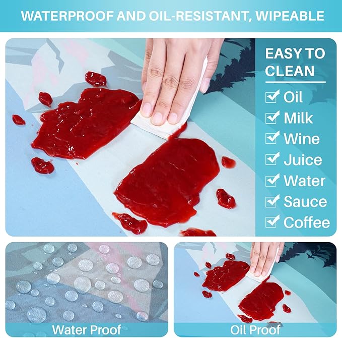- 【Water and Oil Resistant】The table cloth providing excellent water and oil resistance. Stains can be easily wiped away, keeping the table clean and tidy. Although it cannot be machine washed or bleached, you can easily clean it with a damp cloth. Wrinkles can be ironed out from the back using an iron, ensuring that it maintains its good condition even after long-term use.
