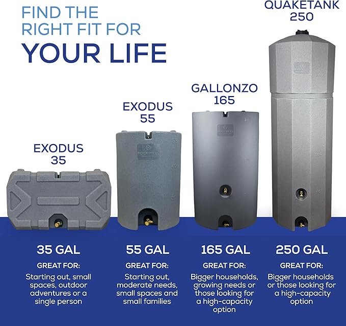 Exodus 35 Gallon Water Storage Tank by Rockwell Products | Emergency Water Storage Container | Stackable, BPA Free, Made in The USA (Granite)