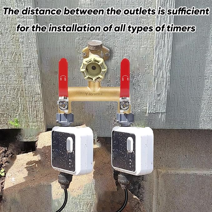 - 2: We have widened the distance between spouts for installations designed to use multiple garden irrigation system timers at the same time, as well as for a wide variety of commercial faucets, waterers, hoses and other large tool dispensers, providing more flexibility and convenience for gardens, bathrooms and other settings. Spout spacing is 2.95 inches.