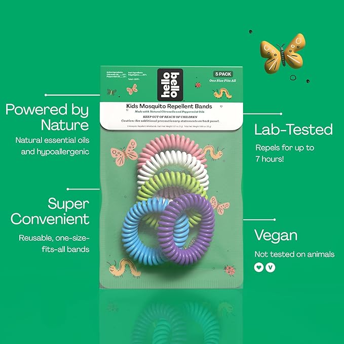 Hello Bello Kids Mosquito Repellent Bracelets, Made with Natural Citronella and Peppermint Oils, 5ct Bag