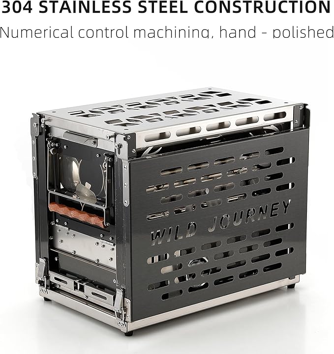 - FOLD-FLAT TABLE INCLUDED: A 304 stainless-steel folding table rides with the stove. It sets up in seconds, adds height, and folds away flat for transport. The underside doubles as a wood rack, and two swing-out side shelves give you extra prep or drying space for food and gear.