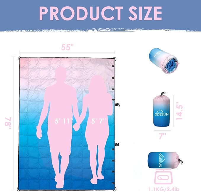 - Versatile Printed Down Camping Blanket Packable: Lightweight yet sturdy, this packable down camping blanket is perfect for backpacking, hiking, camping, stadium events, beach visits or festivals,or on your sofa in the afternoon, this down camping blanket waterproof is wrapped around you and becomes a warm, poncho-style down blanket camping.