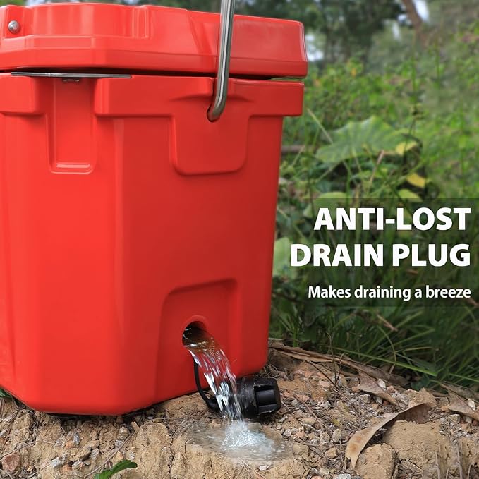 - Versatile Lid Lock Handle: The portable cooler comes with an ergonomically designed stainless steel lid lock handle. The durable lid lock handle can be lifted up to lock the lid in place and folded down to open the lid. Premium sponge covers the handle to reduce friction on the hands, making the camping cooler more portable