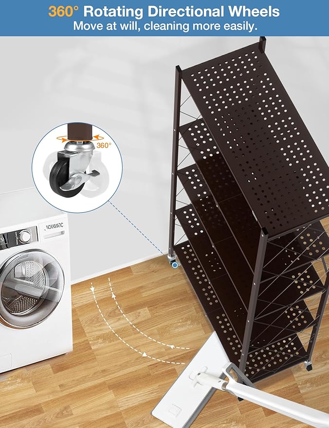 - [2X Thicker Than Other Folding Racks] Rock-solid and worry-free load-bearing. We utilize thickened and widened iron plates, with columns measuring 1.5x3 cm, providing heavy-duty shelving with exceptional stability, allowing you to confidently place a variety of items.