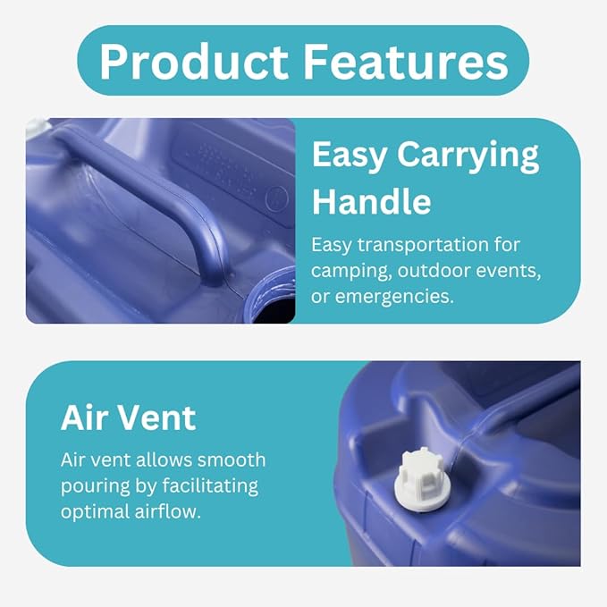 - Durable Storage: Made of food-grade plastic, this water storage container is built to last with a sturdy design able to hold up to 5 gallons of water.