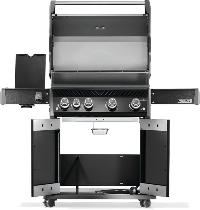Napoleon Rogue PRO 525 Natural Gas Grill with Infrared Side Burner, Black, Durable 5-Burner Cooking Surface