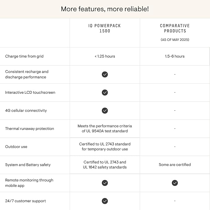 - SMART ACCESSORIES: (Sold separately). Unlock even more versatility with the IQ Portable Panel and IQ Cart, purpose-built to complement the IQ PowerPack 1500. Connect up to two IQ Portable Panels for a maximum of 400 W of solar charging.