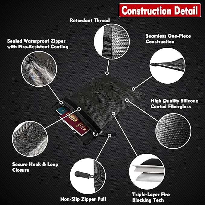 - Reliable Fireproof Protection: Each money bag is crafted from double-layer silicone coated fiberglass; withstands temperatures up to 4200 ℉ to protect valuable cash, files, and accessories during emergencies like fire