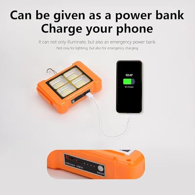 - 【Lampara Recargable Para Apagones】Support USB power cord and solar charging. USB charging mode is recommended for daily charging, and solar charging mode is suitable for outdoor emergency charging. In addition, this emergency work light can also be used as a mobile power supply to charge other electronic devices.