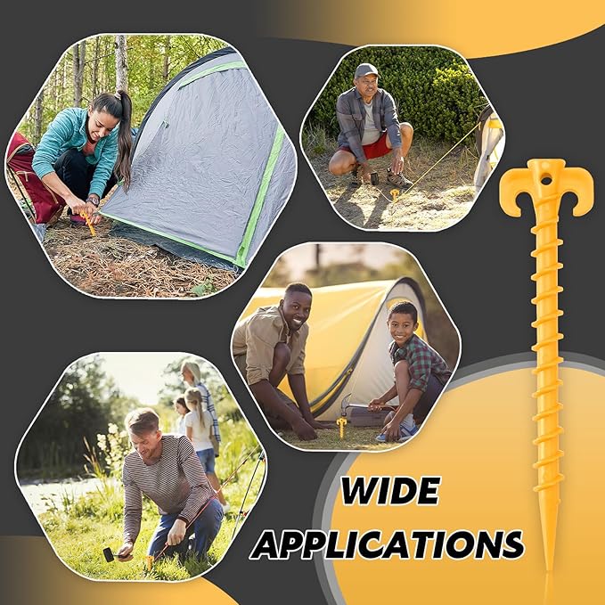 - You Will Get:Package contains 8 yellow screw in tent stakes, which is enough to meet your daily use and replacement needs. Plastic stakes is a practical tool to ensure the stability of tents and make your outdoor activities more comfortable and worry-free