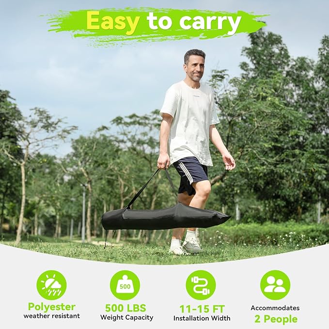 - Perfect Hammock Hanging Distance:For optimal comfort and to prevent sagging, we recommend an 11-15 ft hanging distance between trees or supports. This ensures a taut, secure lounging space while keeping you off the ground. Compatible with most standard hammock stands.