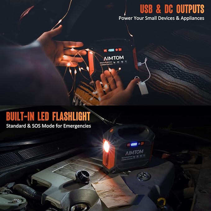 - ▲ Portable & Versatile Design: Lightweight and compact with a built-in ultra-bright LED flashlight/SOS mode, this multifunction power station is your perfect companion for camping, hiking, power outages, mobile stalls, and off-grid adventures.
