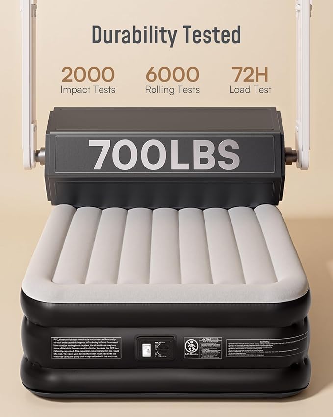 - Upgraded air mattress full with built in pump: With a unique Type-0 shape beam construction, providing head-to-toe firm support and comfort, capacity of up to 700 lbs. Sleep with confidence; you won't wake up on the floor due to unexpected air loss.