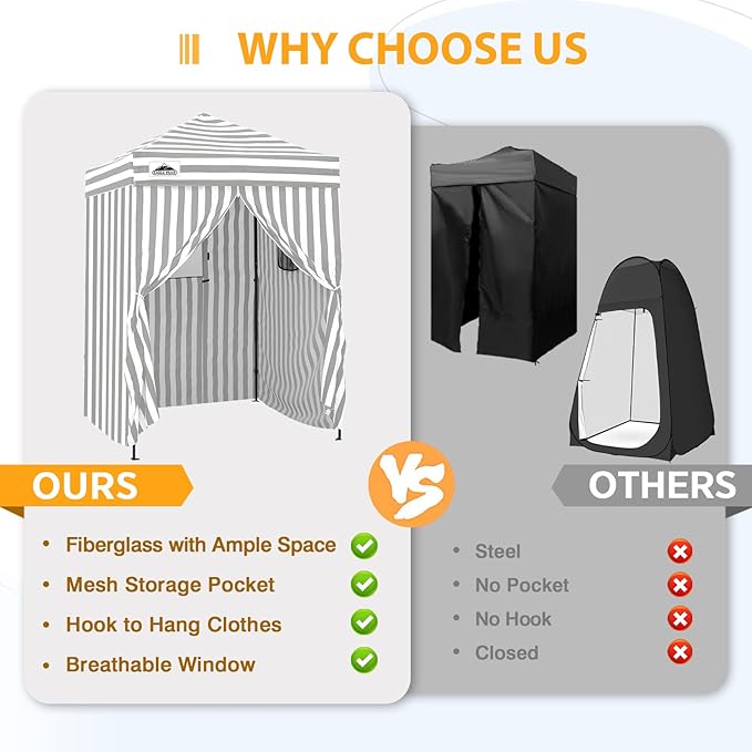 - INSTANT PRIVACY CHANGING ROOM: 5x5 changing tent for one or two people. Perfect as a changing room or sun cabana for outdoor activities: fashion show, photoshoot, camping, backyards, pool party or a showering tent, portable toilet shelter.