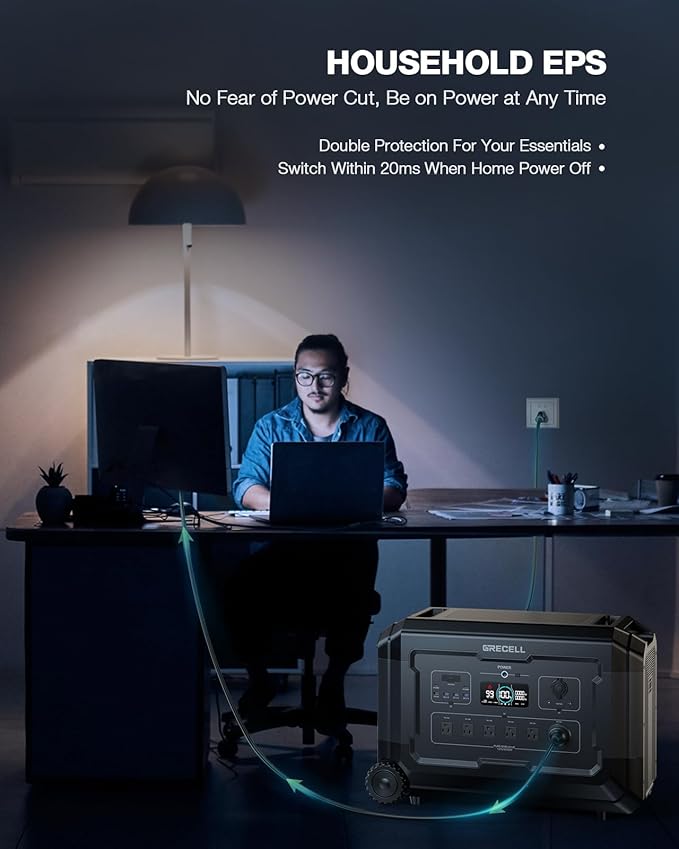 - RELIABLE POWER FOR EMERGENCIES - S5 4000w portable power station features a less than 20ms EPS, ensuring safe operation for sensitive devices like PS5, CPAP machines, refrigerators, and more during power outages. It provides 24/7 protection against power disturbances or grid failure, making it ideal for home emergencies, network equipment, and outdoor tasks that require uninterrupted power.