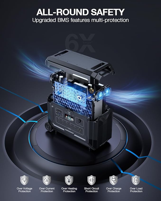 - BUILT-IN LIFEPO4 BATTERY & ADVANCED SAFETY - The GRECELL portable power station uses a lithium iron phosphate (LiFePO4) battery, known for its safety and reliability. Equipped with an advanced eight-layer BMS, it offers protections against overcharge, over-discharge, short circuits, and temperature fluctuations. With 4000+ charge cycles and a lifespan of 10+ years, it’s built for long-term, worry-free use.